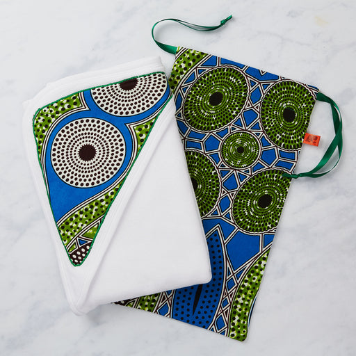 Afropuff African Print Baby Towel Gift Set - Blue and Green