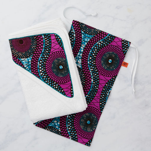 Afropuff African Print Baby Towel Gift Set - Purple and Teal