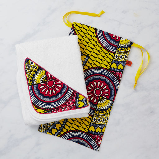Afropuff African Print Baby Towel Gift Set - Pink and Yellow