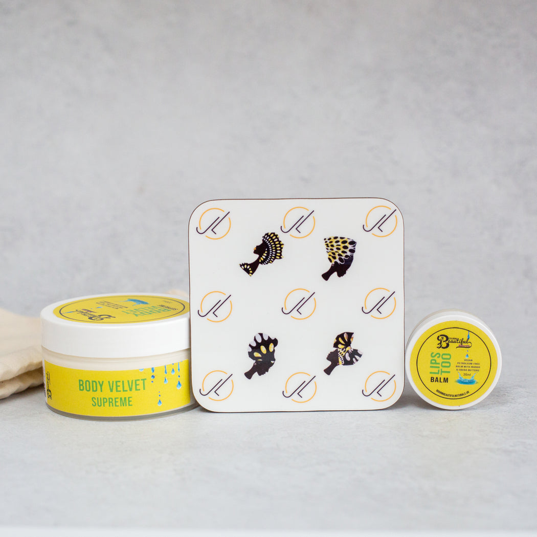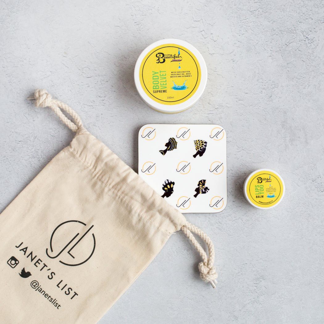 Janet's List x Colourshot Cards Coaster: This stunning coaster features design of a lady, with a black and yellow pattern inspired by African fabric. This beautiful coaster is a perfect companion for your cuppa to get you through those zoom meetings or when you finally relax and have a glass of something special.